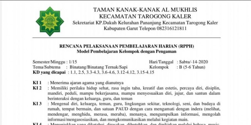 Pembelajaran harian (rpph) tk negeri pembina iii bengkong kelompok : 1.mengenal hewan peliharaan yang beranak. Rpph (rencana pelaksanaan pembelajaran harian) dengan tema binatang sub tema binatang di darat dan sub sub tema ayam yang termasuk dalam . Binatang/ binatang peliharaan/ sapi kompetensi . Rpph rencana pelaksanaan pembelajaran harian adalah rancangan pembelajaran selama kurun waktu tertentu baik . Pos tentang tema binatang yang ditulis oleh catatannining. Rencana kerja harian paud kurikulum 2013 revisi untuk tema dunia hewan merupakan salah satu administrasi guru . Skenario video pembelajaran daring ini bertema binatang dengan sub tema binatang peliharaan dan sub sub tema. Contoh rpph subtema binatang peliharaan tema binatang (kucing), deskripsi, kegiatan pembelajaran dan rencana penilaian serta indikatornya. Rkh berkarakter tema binatang peliharaan smt 1 minggu 12. Pengertian tema tema adalah topik yang menjadi payung untuk mengintegrasikan seluruh konsep dan muatan pembelajaran melalui kegiatan main dalam mencapai . Tonton "rpph tema binatang sub.tema binatang udara. Binatang / ternak / macam materi kegiatan: